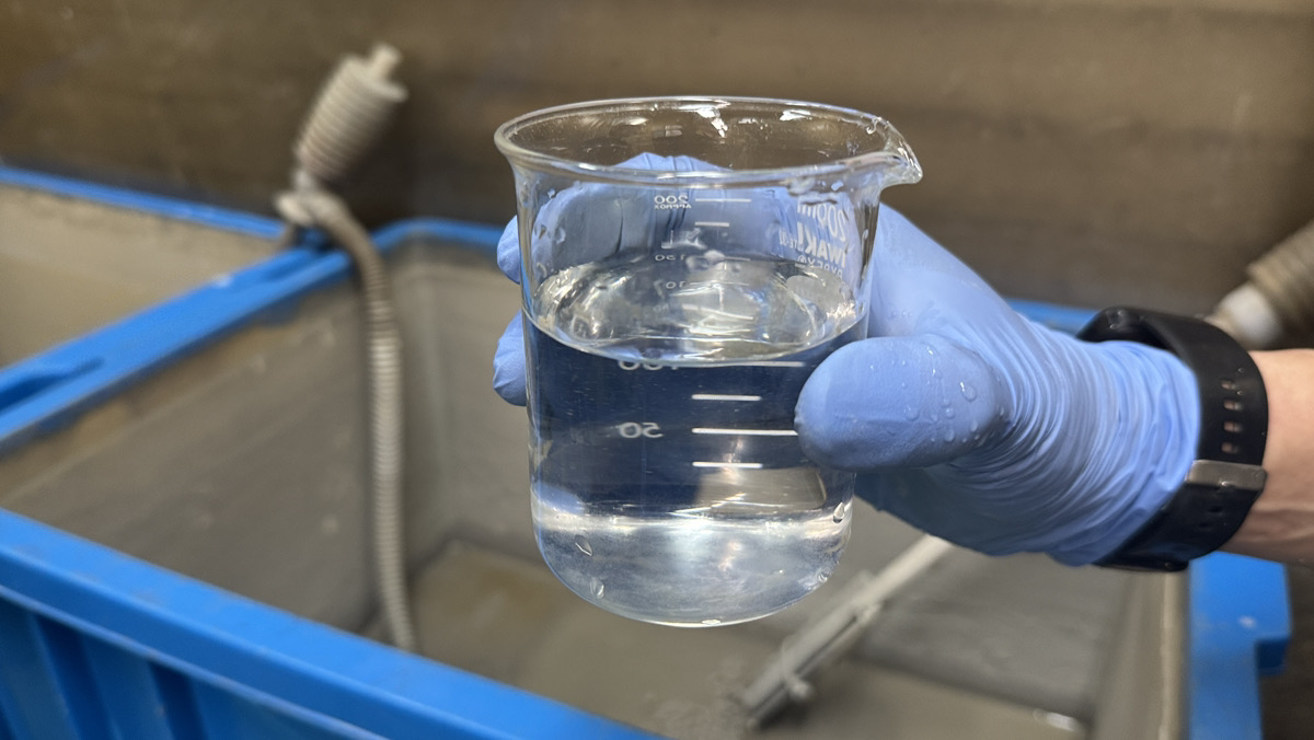処理できなかった排水/沈まない水を数分でオイルフロックで沈降。