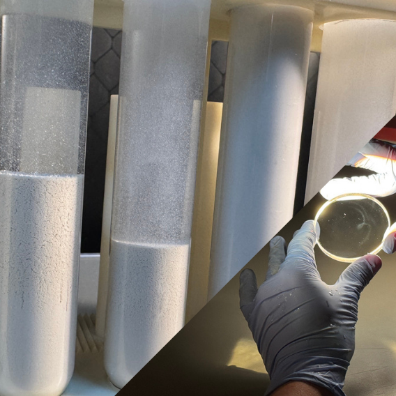 お客様の用途や環境に合わせて最適な粒径/添加剤を配合。